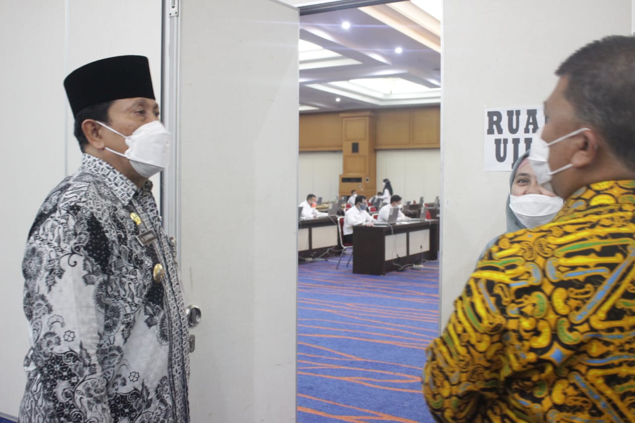 PASIRPENGARAIAN – Bupati Rokan Hulu (Rohul) H Sukiman melakukan peninjauan Pelaksanaan Ujian Seleksi Kompetensi Bidang (SKB) Calon Pegawai Negeri Sipil (CPNS) Pemerintah Kabupaten Rokan Hulu, Rabu (02/12) di Hall Islamic Centre Pasir Pengaraian.