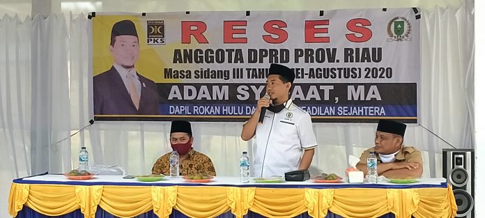 PASIRPENGARAIAN – Hari ini, Selasa (07/07/2020) Anggota DPRD Provinsi Riau, Adam Syafaat MA menggelar reses masa sidang III di Desa Marga Mulia, Kecamatan Rambah Samo, Rokan Hulu ,Riau.