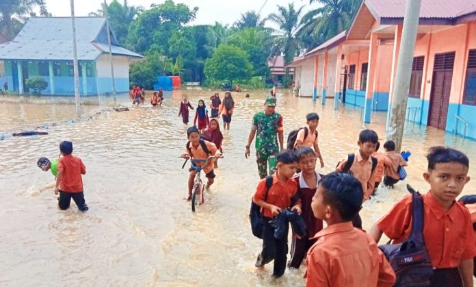 Banjir Genangi Ratusan Rumah dan Sekolah di Rohul, Siswa SD dan Paud Diliburkan