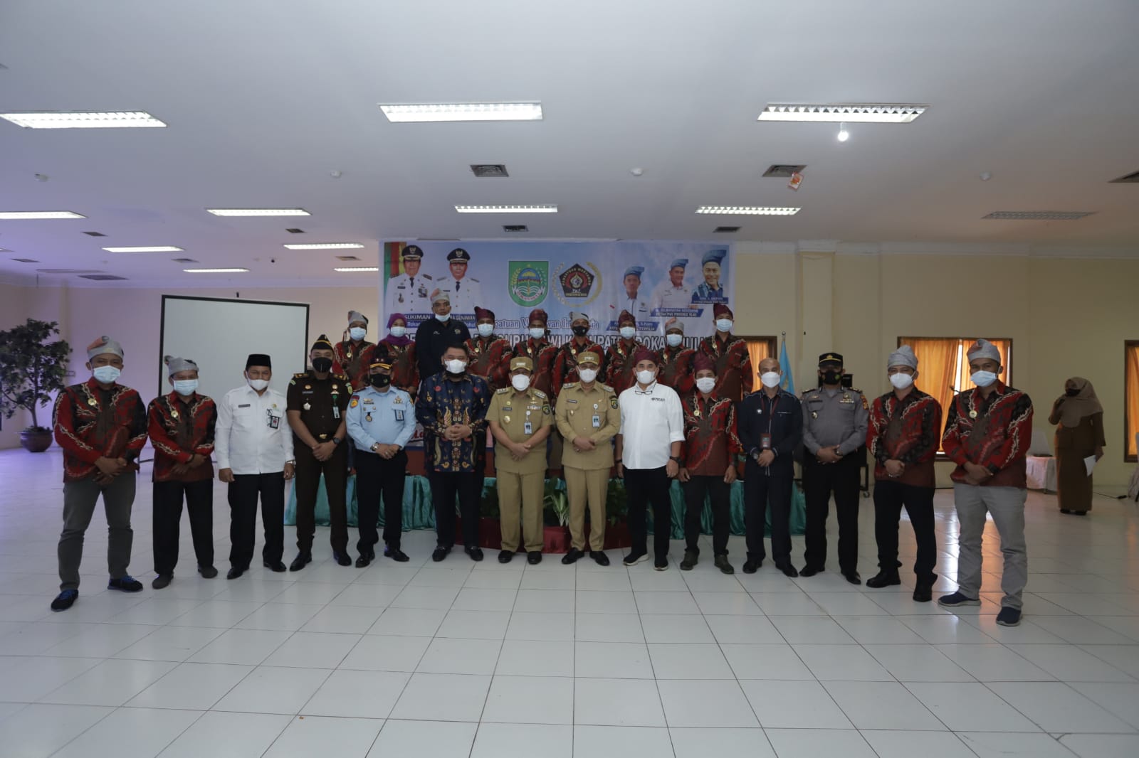 Pasca menggelar pelantikan, Bupati Sukiman memberikan ucapan selamat kepada Kepengurusan PWI Rohul terpilih dengan tetap menerapkan protokol kesehatan.
