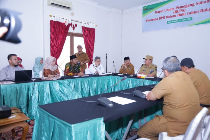 PASIRPENGARAIAN – Bupati Rokan Hulu (Rohul), H Sukiman buka secara resmi Rapat Penyampaian Pertanggungjawaban Perusahaan Daerah Bank Perkreditan Rakyat (Perumda BPR) Rokan Hulu tahun buku 2022, Senin (17/04) di Sapadia Hotel Pasir Pengaraian.