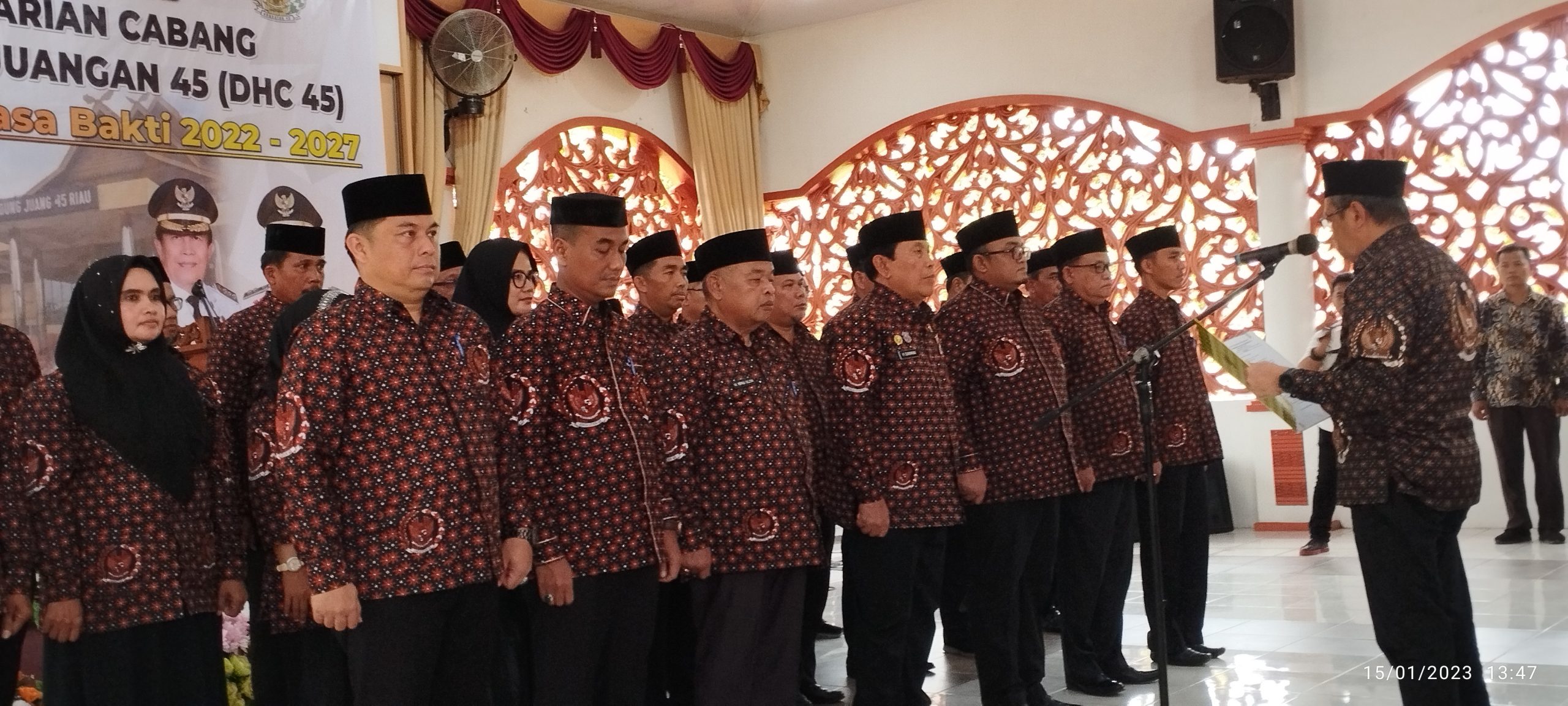 PASIRPENGARAIAN – Bupati Rokan Hulu H Sukiman dilantik secara resmi oleh Gubernur Riau, H Syamsuar sebagai Ketua Umum Pengurus Dewan Harian Cabang Badan Pembudayaan Kejuangan 45 (DHC 45) Kabupaten Rokan Hulu masa bakti 2022-2027, Ahad (15/01) di Pendopo Rumah Dinas Bupati, Komplek Pemda Pasir Pengaraian.