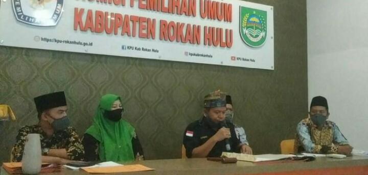PASIRPENGARAIAN – Komisi Pemilihan Umum (KPU) Kabupaten Rokan Hulu (Rohul) menetapkan tiga paslon berdasarkan Keputusan Rapat Penetapan Peserta pasangan calon Bupati dan Wabup di Kantor Komisi Pemilihan Umum (KPU) Kabupaten Rokan Hulu dengan mengikuti protokol kesehatan, Rabu (23/09/2020).