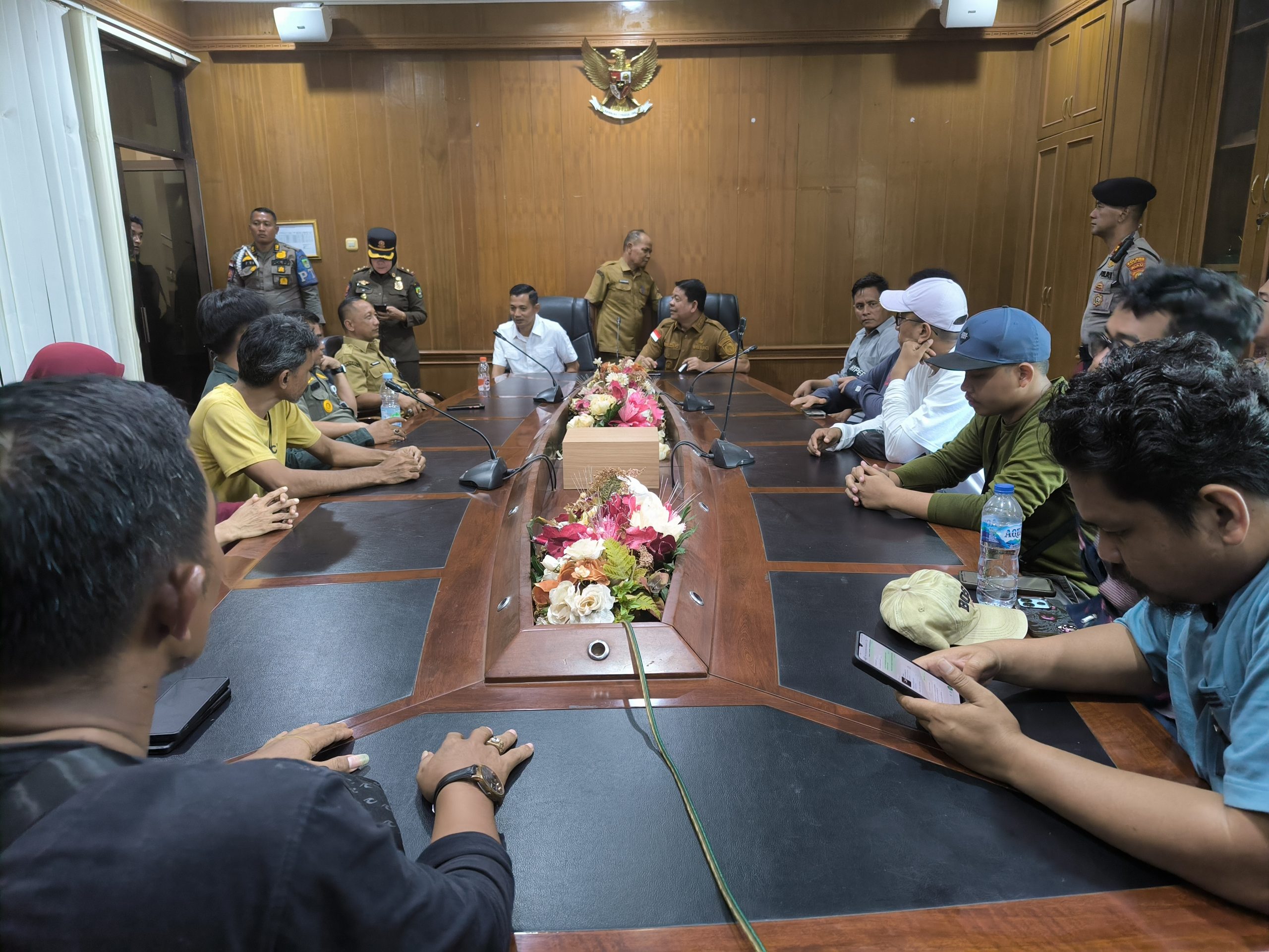 Dalam persoalan ini, Wabup berpesan kepada seluruh pihak untuk dapat berdamai, dimana dunia usaha dapat berusaha, masyarakat pun dapat bekerja sebagaimana mestinya, sehingga perekonomian dapat bertumbuh dengan baik.