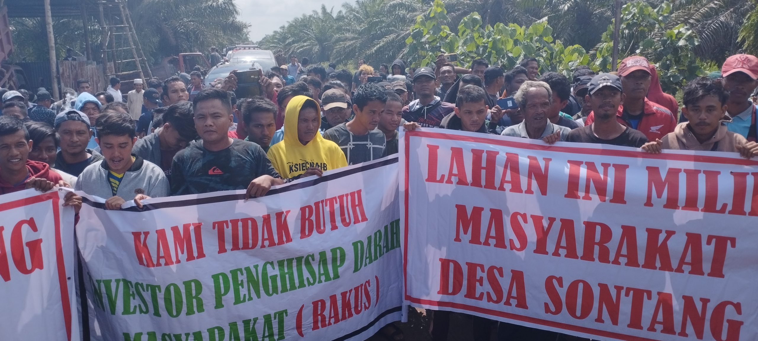 Dengan membawa spanduk bertuliskan “Kami dari masyarakat Desa Sontang tidak butuh perusahaan yang hanya mengambil keuntungan di Desa Kami”,  Ribuan masyarakat yang terdiri dari kalangan bapak-bapak dan remaja Desa Sontang itu berhasil menduduki Perusahaan yang terletak di Dusun Rintis, Desa Sontang.