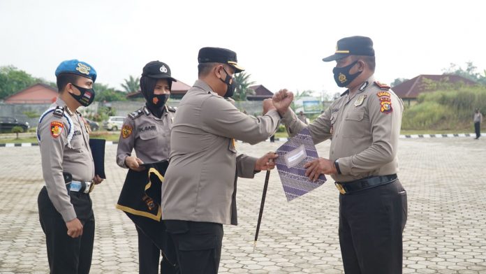 PASIRPENGARAIAN – Tepat pada Apel Senin (23/08) sekitar pukul 07.30 WIB, Kapolres Rokan Hulu (Rohul) AKBP Eko Wimpiyanto Hardjito SIK memberi reward dan apresiasi ke Sebelas Personel Tandun, Rohul yang berhasil menangkap seorang pria terduga pelaku penyalahgunaan Narkotika Jenis Shabu-Shabu.