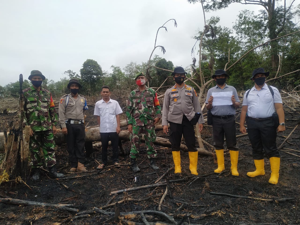 Terpantau Titik Api, Tim Gabungan TNI Polri Temukan Karlahut di Desa Rambah Tengah Hulu
