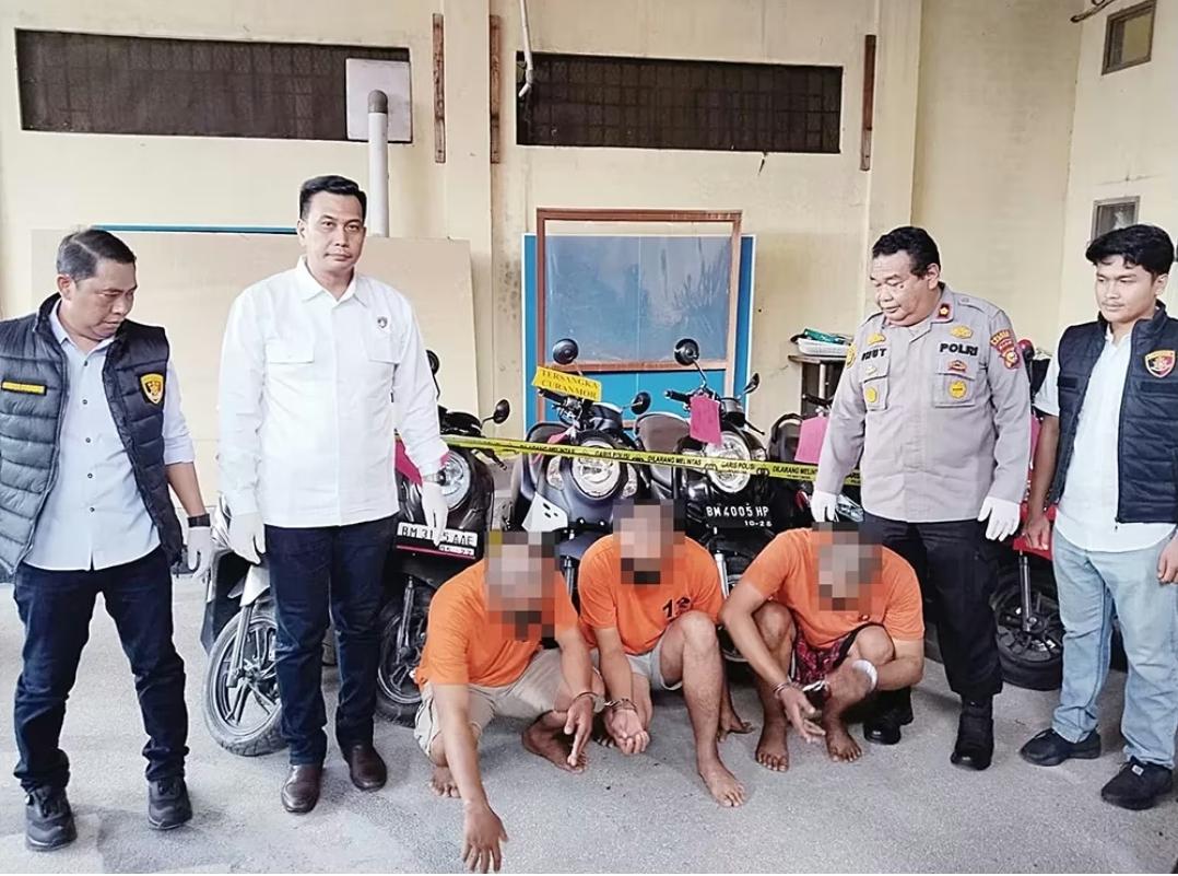 PEKANBARU – Polsek Binawidya melalui unit Reskrim Polsek Binawidya berhasil menangkap tiga pria yang diduga merupakan pelaku spesialis pencurian motor di area Kota Pekanbaru. Para tersangka yaitu, SD alias Hendri (48) dan Pu alias Puji (35). Mereka ditangkap di Jalan Cipta Karya, Kelurahan Sialang Munggu, Kecamatan Tuah Madani, pada Selasa malam (22/7) yang lalu. Sementara itu, tersangka lain, KB telah ditangkap sebelumnya dan juga terlibat dalam pencurian kendaraan bermotor bersama Hendri dan Puji. Dikutip dari Riaupos pada Selasa (5/8/2025).