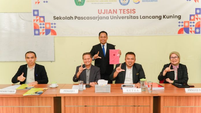 PEKANBARU – Sekolah Pascasarjana Universitas Lancang Kuning (Unilak) kembali membuktikan diri sebagai institusi pendidikan pilihan bagi para profesional dan tokoh publik di Riau. Kali ini, Dodi Irawan, anggota Dewan Perwakilan Rakyat Daerah (DPRD) Provinsi Riau sekaligus Sekretaris DPW Partai Amanat Nasional (PAN) Riau, sukses mempertahankan tesisnya dalam ujian sidang Magister Ilmu Hukum, Kamis (05/02/2026).