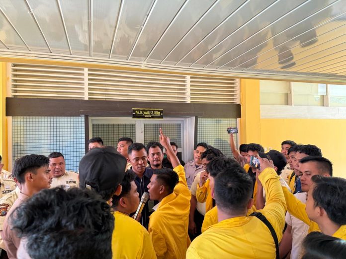 “Kami tidak datang untuk berwisata! Kami datang untuk menuntut kemana perginya uang mahasiswa? Proyek digelontorkan, tapi turap saja roboh berkali-kali. Rektor harus buka mata, biaya wisuda dan SPP naik terus, tapi kualitas fasilitas dipertanyakan. Jangan jadikan kampus ini ladang bisnis yang tertutup!” tegas Ahmad di tengah kepungan massa.