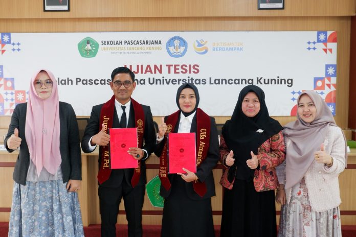 PEKANBARU – Perjuangan menempuh pendidikan tinggi tidak selalu mudah, terlebih bagi pendidik yang berasal dari daerah dan harus membagi waktu antara tugas profesional, keluarga, serta studi akademik. Hal tersebut tercermin dari kisah inspiratif pasangan suami istri asal Tembilahan, Kabupaten Indragiri Hilir, Juma’adi, S.Pd., M.Pd dan Ulfa Atmarida, S.Pd., M.Pd, yang berhasil menuntaskan ujian tesis Program Studi Magister Pedagogi di Sekolah Pascasarjana Universitas Lancang Kuning.