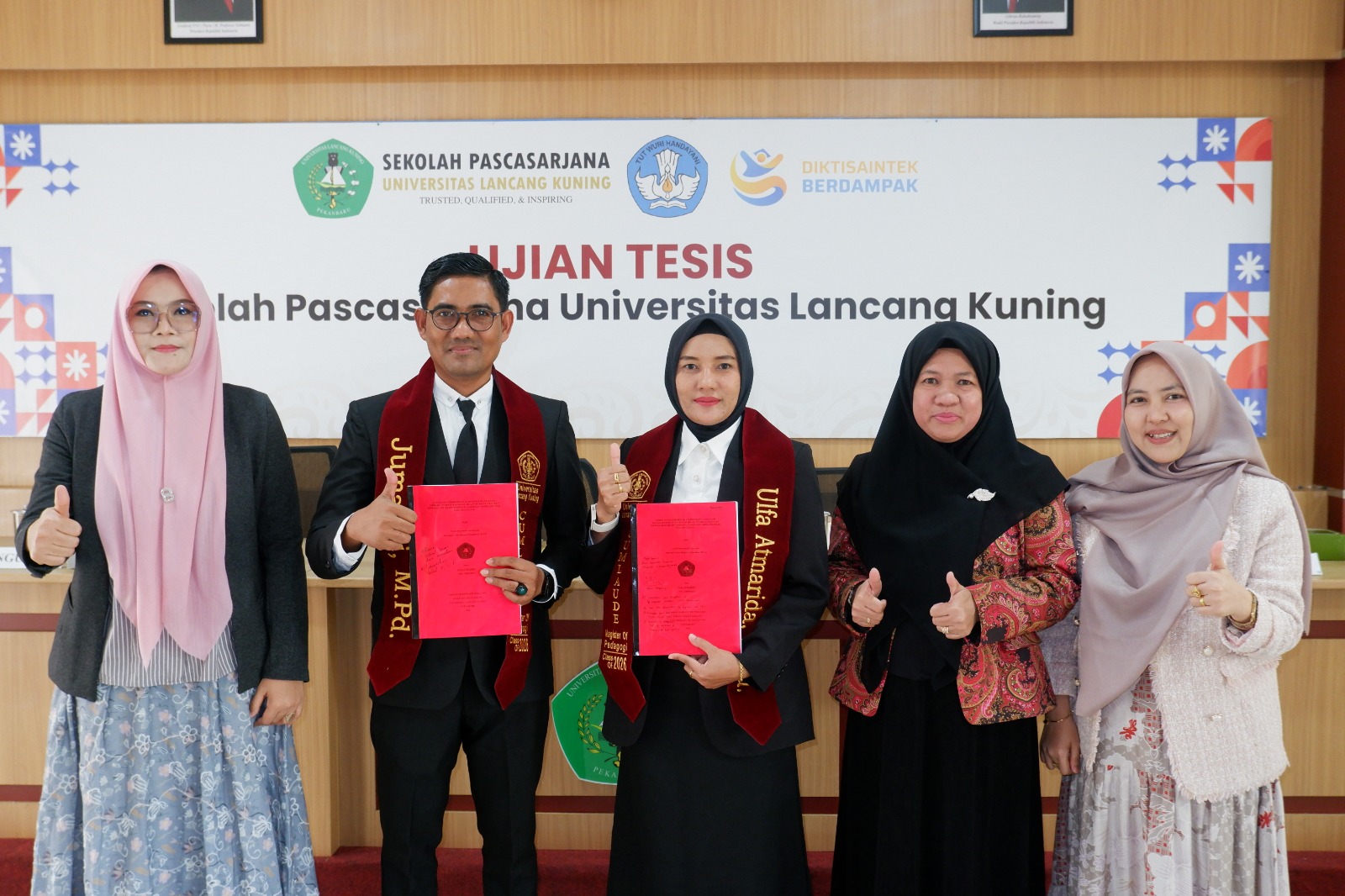“Kami berasal dari Tembilahan, Kabupaten Indragiri Hilir, dan mengambil Program Studi Magister Pedagogi,” ungkap keduanya saat diwawancarai usai ujian tesis.