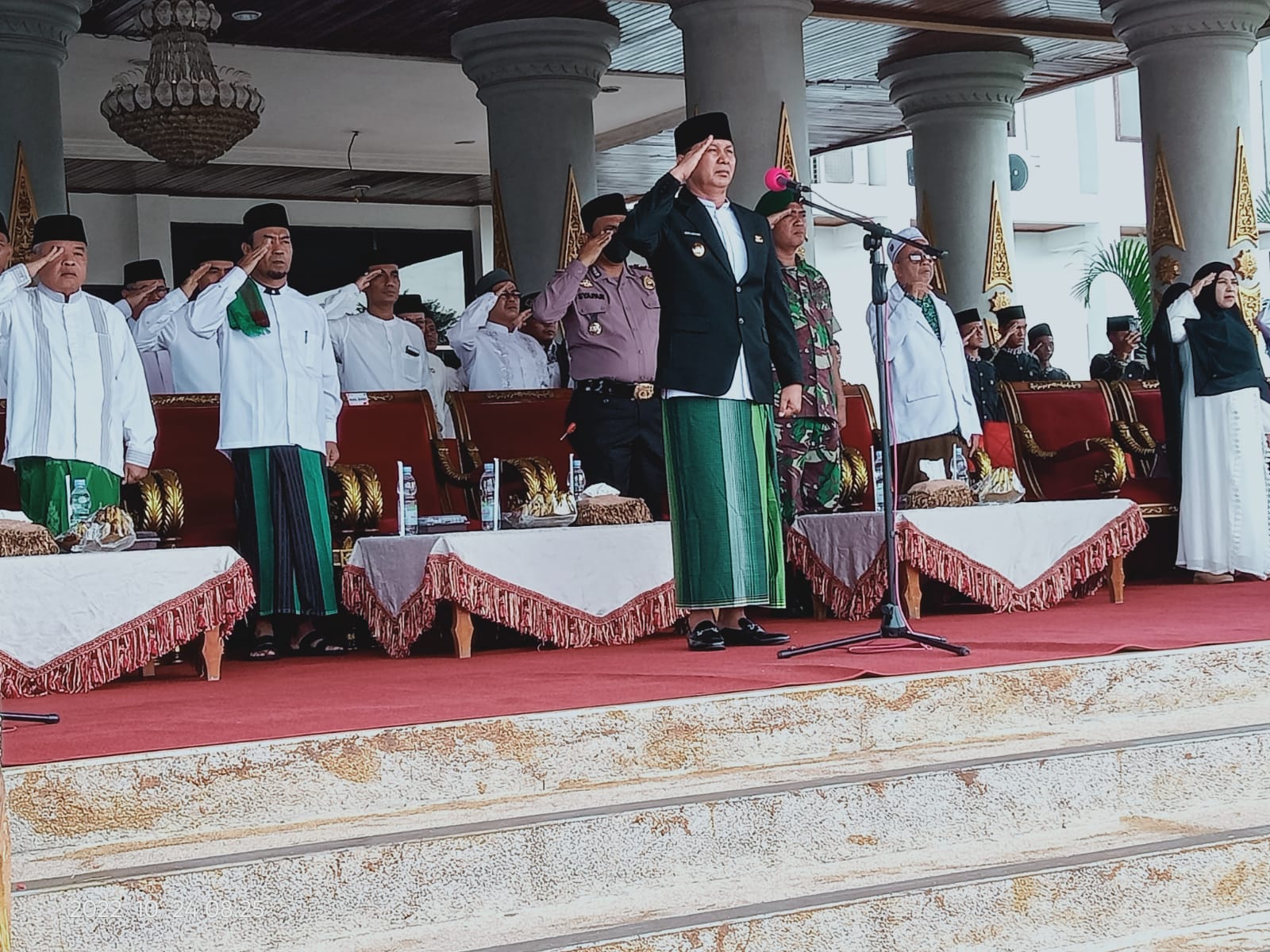Pada amanatnya Wabup mengatakan bahasa, sejak ditetapkan pada tahun 2015, setiap tahun kita selalu rutin menyelenggarakan peringatan hari santri dengan tema yang berbeda-beda. untuk tahun 2022 ini, peringatan hari santri mengangkat tema “Berdaya Menjaga Martabat Kemanusiaan”.